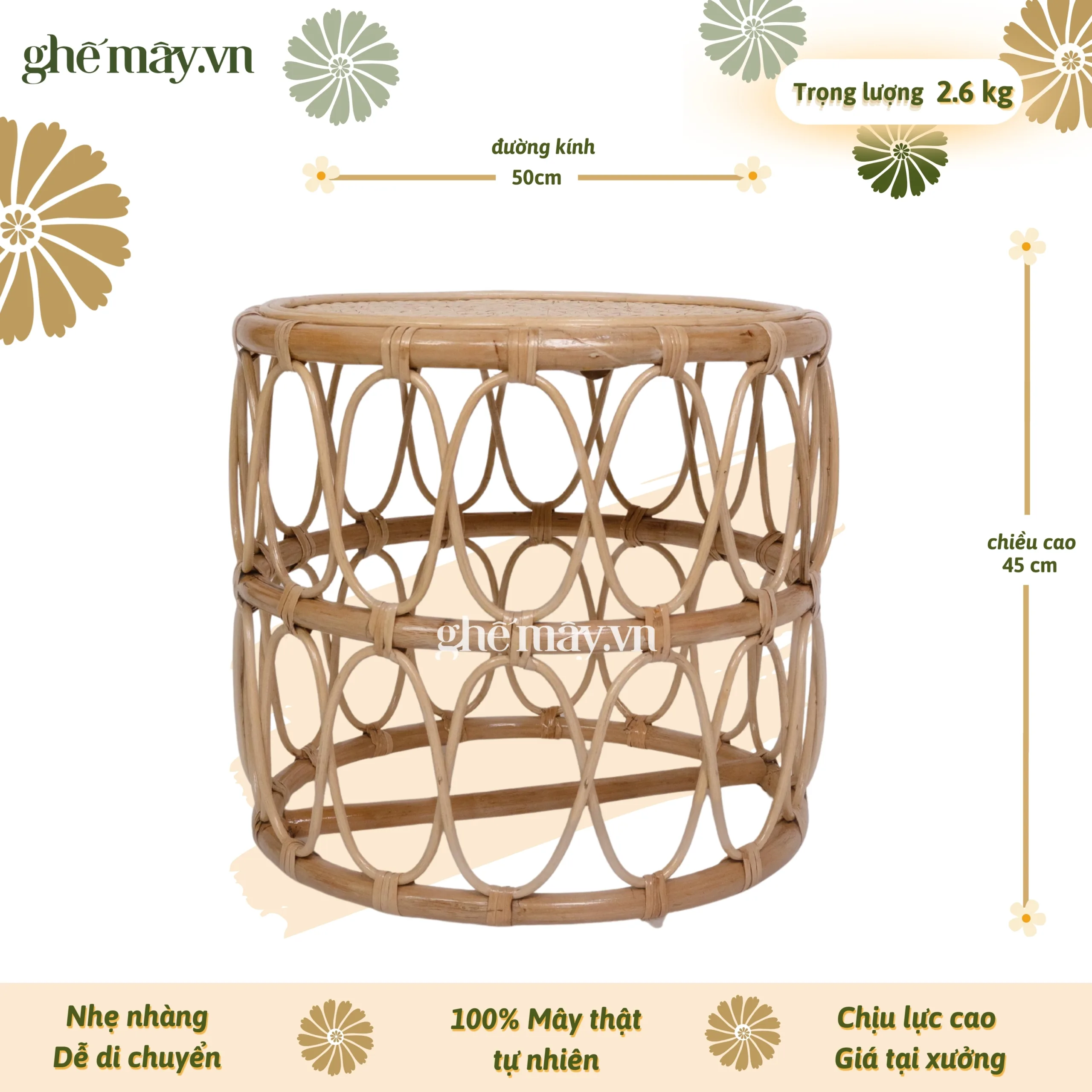 Bàn mây họa tiết vô cực có nhiều công dụng, có thể dùng kết hợp cùng ghế mây để thành một bộ bàn ghế, nhưng cũng có thể dùng để gác chân như một chiếc đôn mây, mua một nhưng lại được hai, chiếc bàn kèm đôn này là một sự lựa chọn vô cùng hợp lí cho những ai yêu thích sự tiện nghi, đa năng.