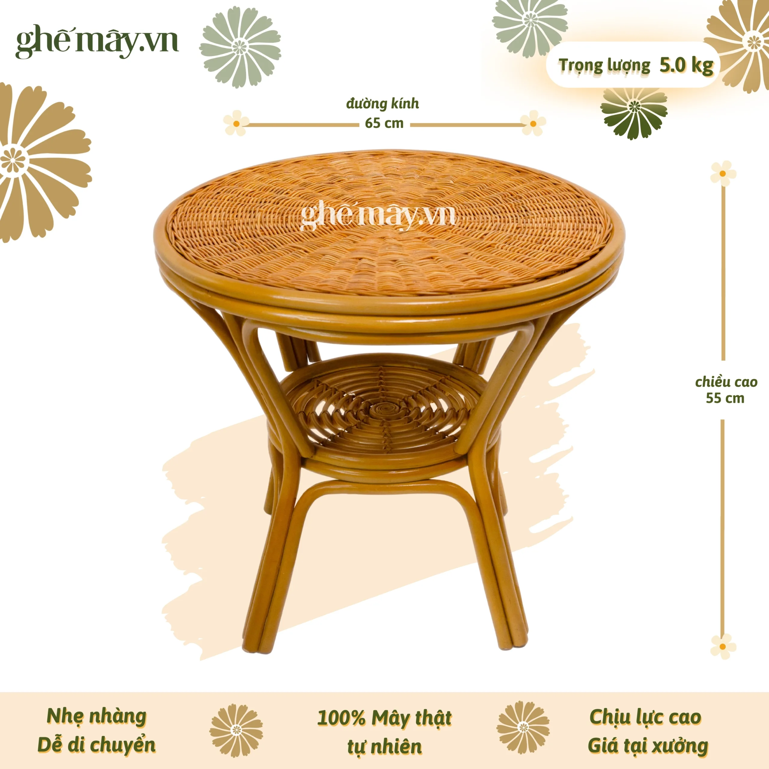 Với chất liệu mây tre tự nhiên, bàn mây mặt đan sẽ là một sự lựa chọn hoàn hảo cho những ai đang tìm kiếm sự hòa hợp đến từ thiên nhiên. Có nhiều ưu điểm ở bàn mây mặt đan: mặt bàn đan khít, kín kẽ và rất chi tiết, đều nhau, không bị lồi lõm mất thẩm mỹ. Bàn được qua tay các nghệ nhân vô cùng lão luyện nên mặt đan rất điêu luyện, kỹ càng.