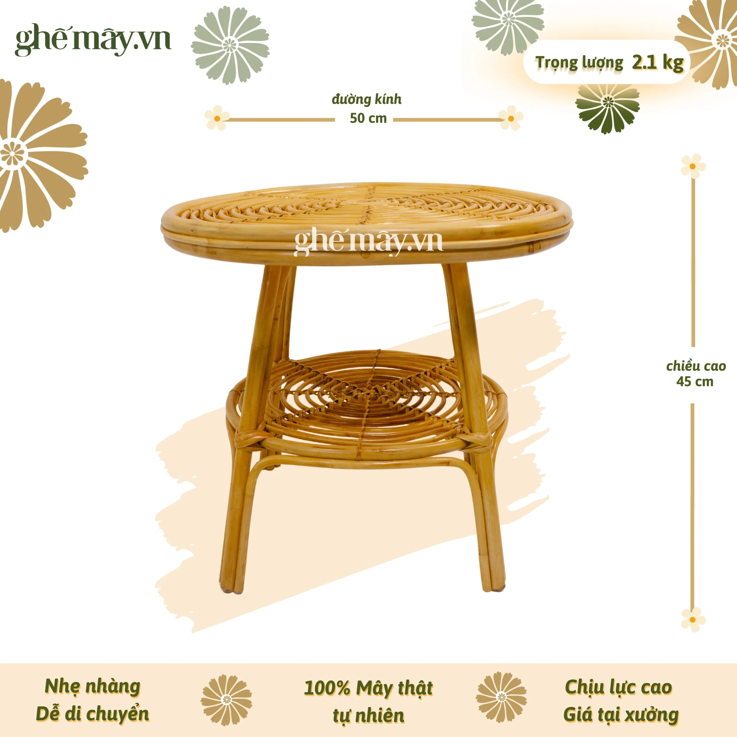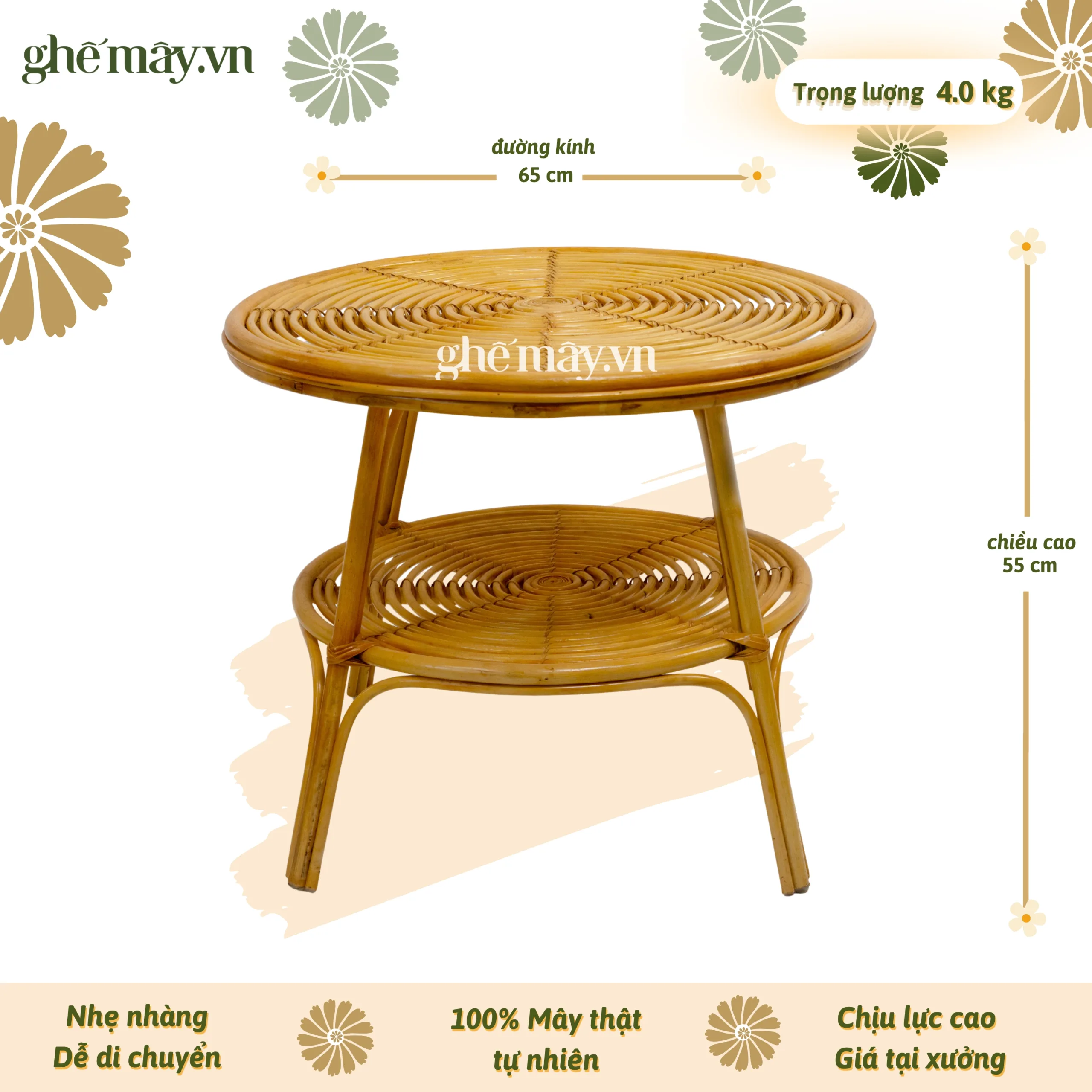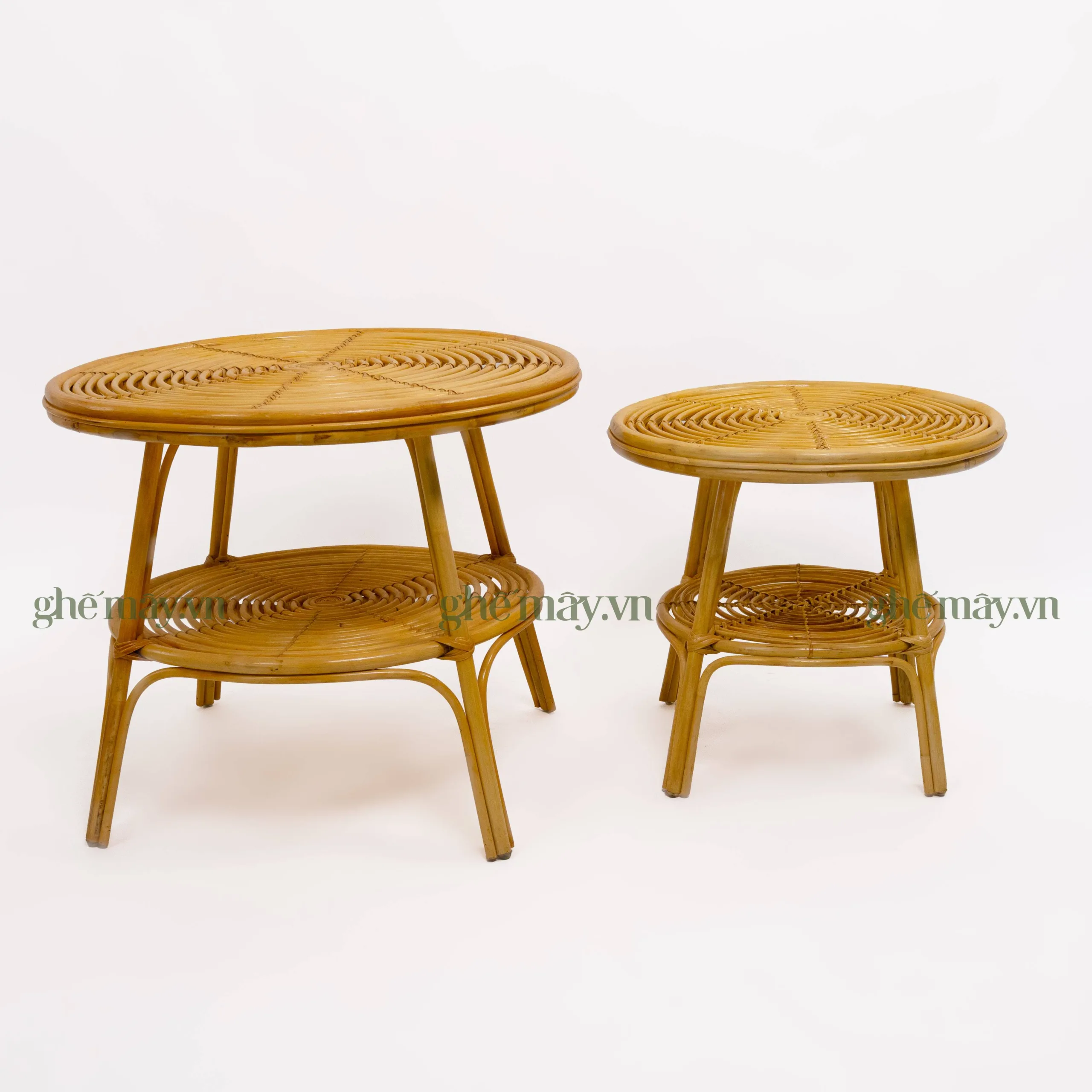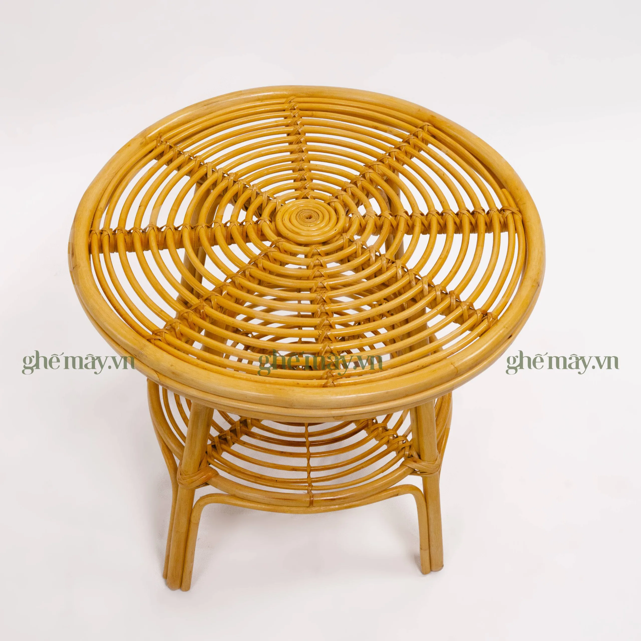 Bàn mây làm từ mây tự nhiên, nhành mây khỏe, có thể chịu lực tốt. Bàn mây phối cùng ghế mây sẽ tạo nên không gian hài hòa màu sắc và có thể ứng dụng nhiều trong trang trí không gian.