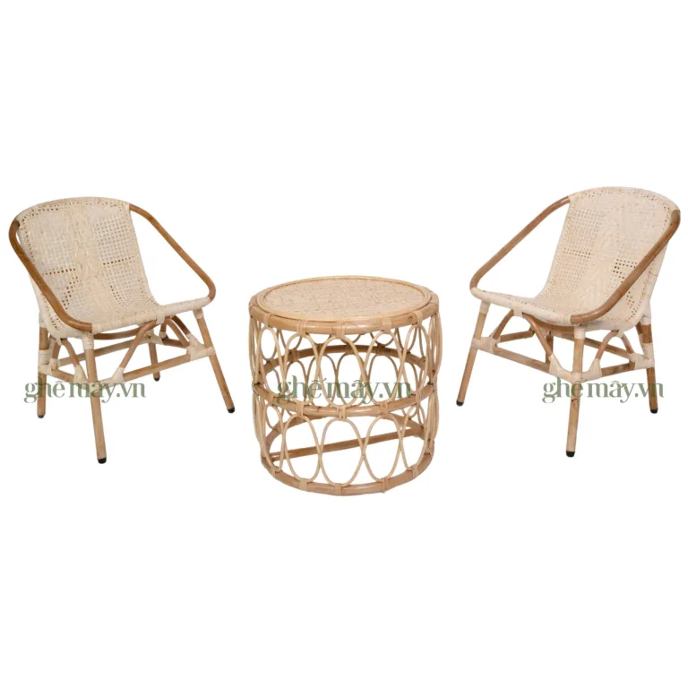 Bộ bàn ghế mây sò mặt đan ngồi êm ái