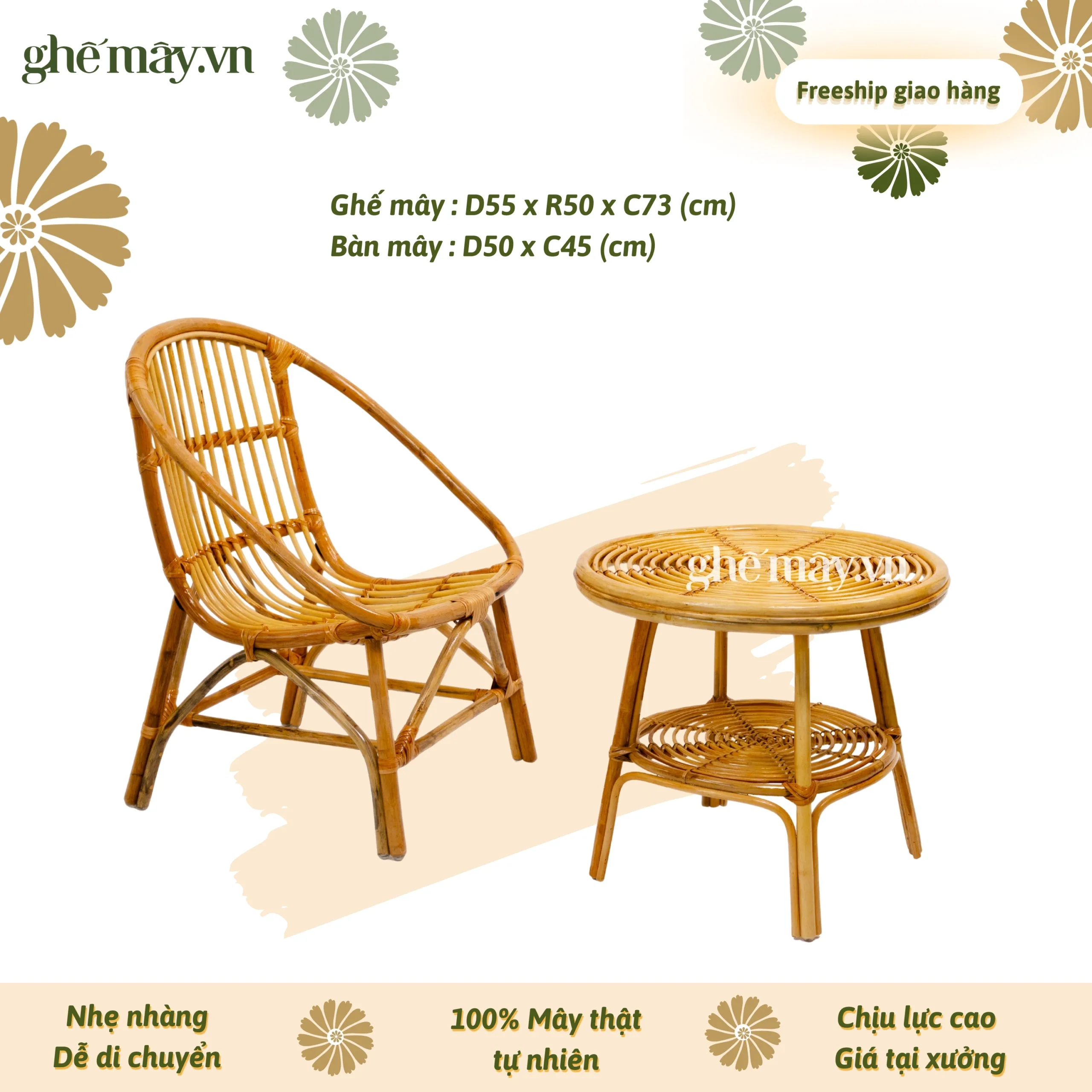 Bộ bàn ghế mây cà phê gồm 4 ghế kèm một bàn vô cùng xinh xắn, thích hợp đặt trong các quán cà phê tối giản, trung tính. Đông thời với kích thước vừa phải, bộ bàn ghế cùng được ứng dụng đặt trên ban công, phòng khách hay phòng riêng vô cùng hợp lý.