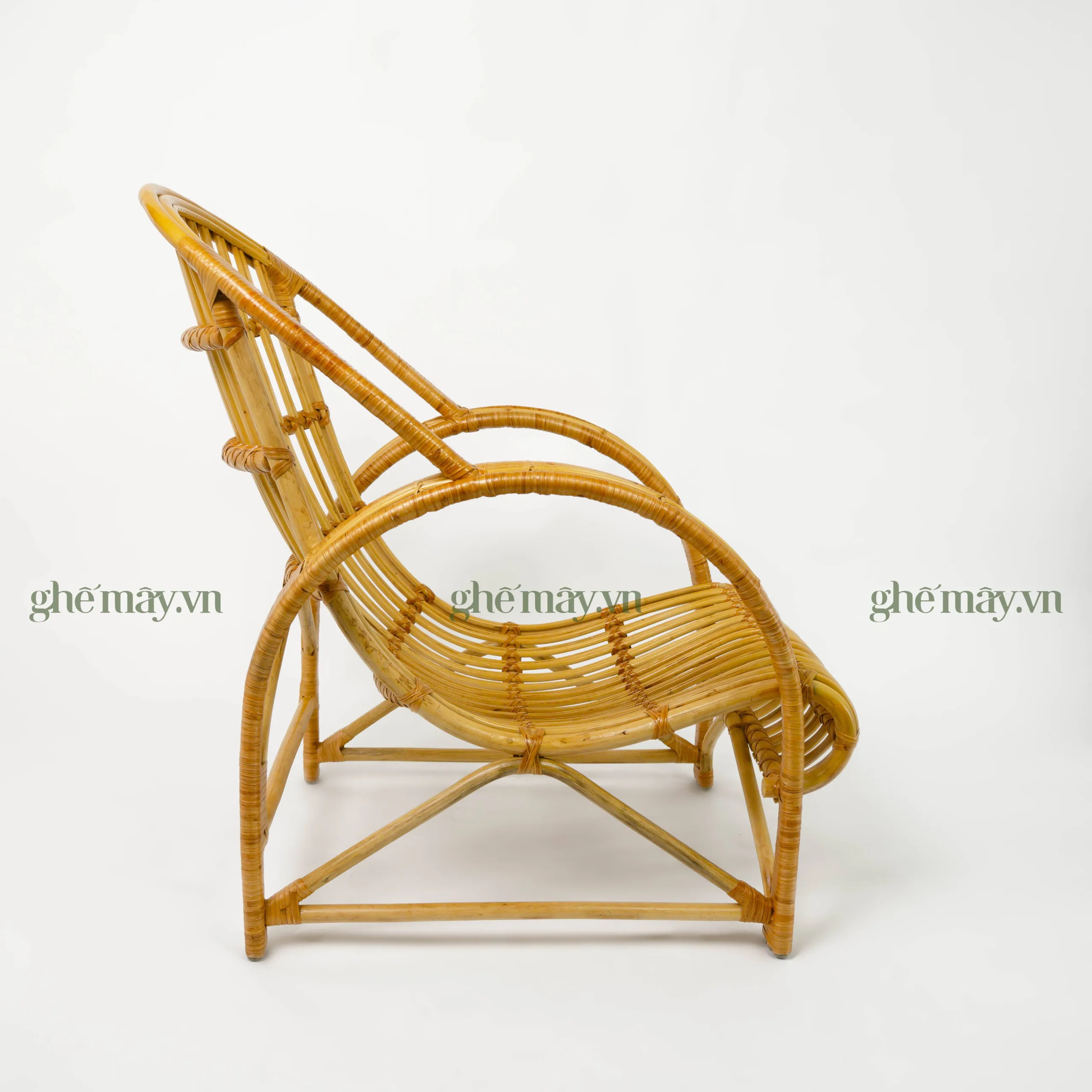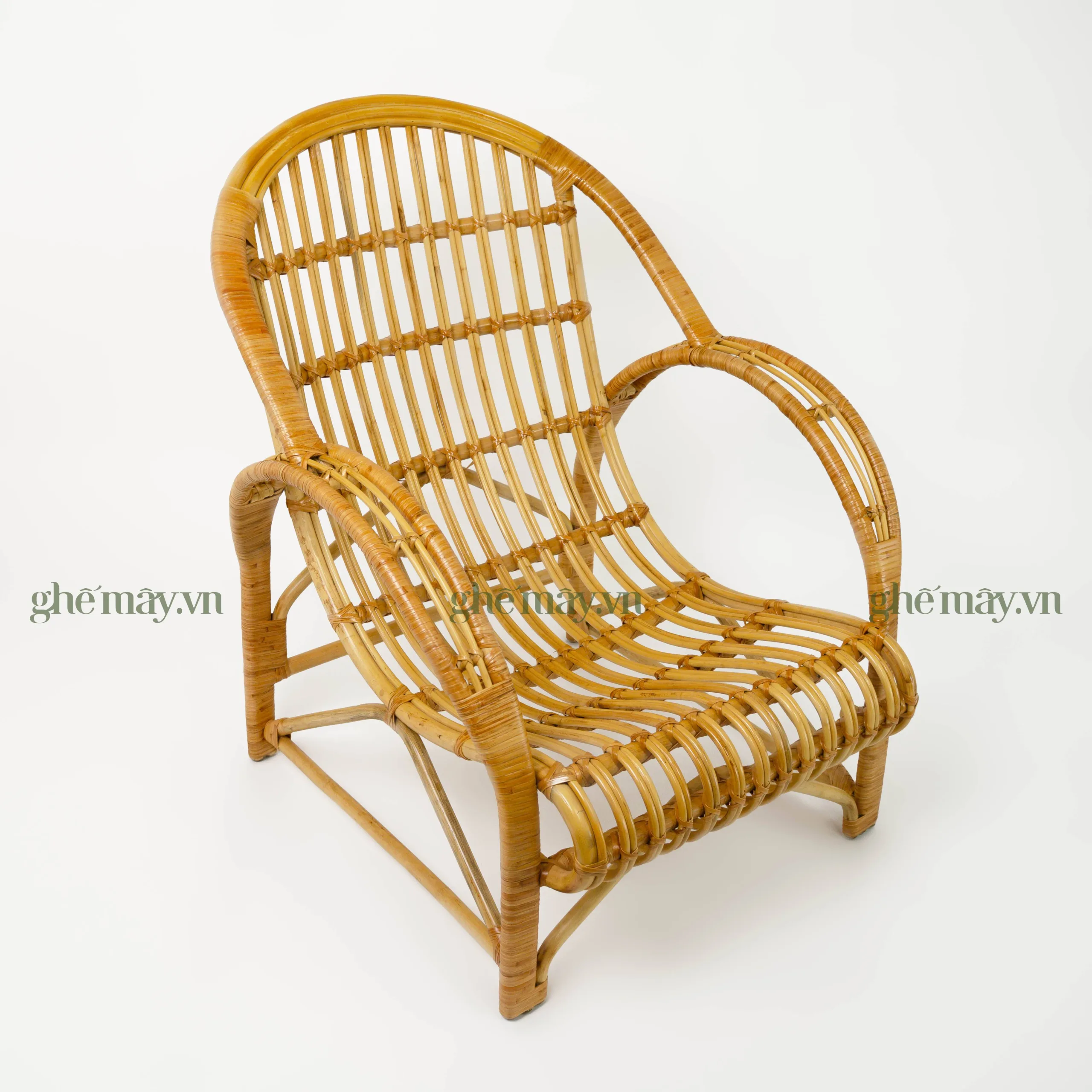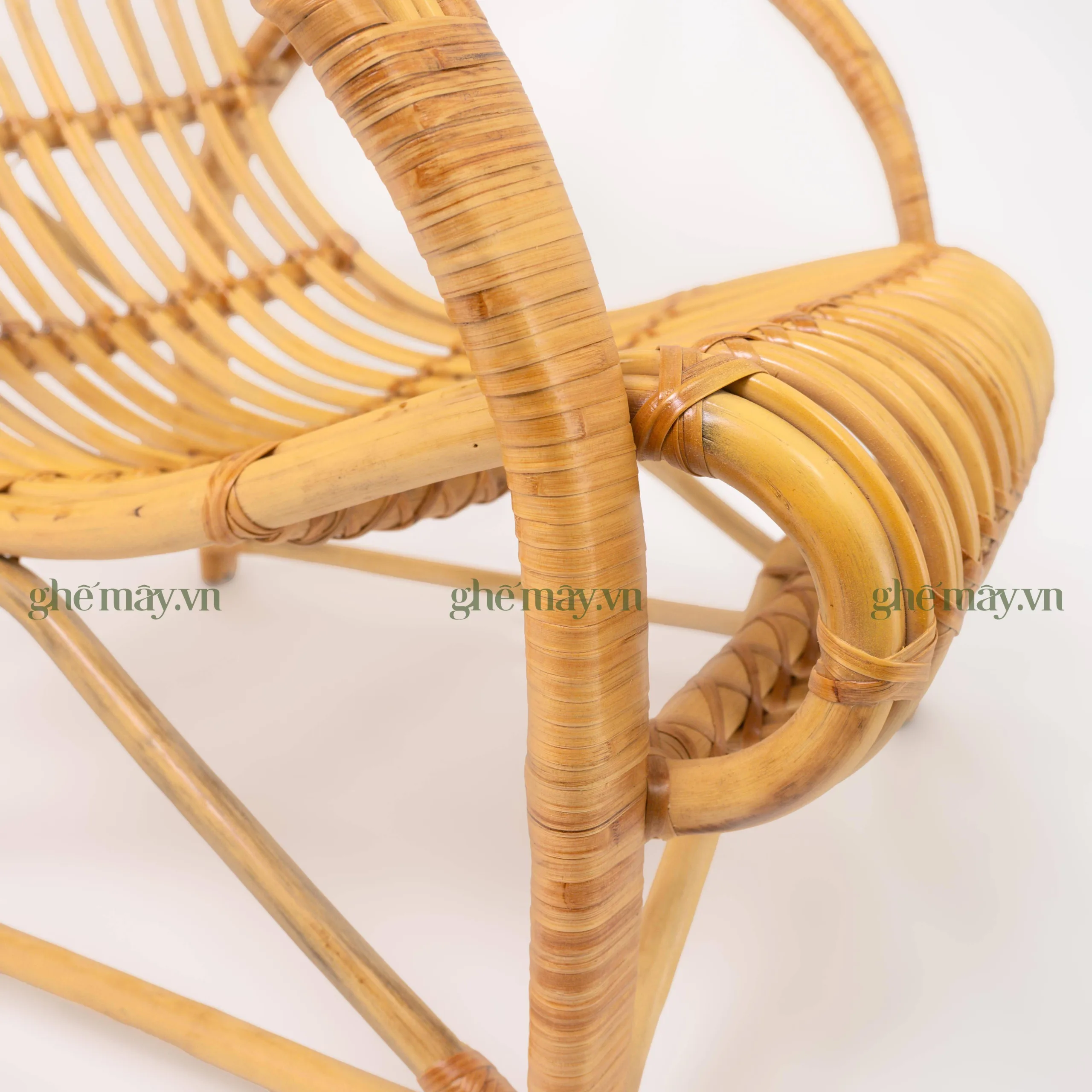 Khung ghế được làm từ những nhành mây to và khỏe, được chọn lựa kỹ càng từ nguồn nguyên liệu tự nhiên. Dưới bàn tay khéo léo của các nghệ nhân làng nghề, từng sợi mây được mài giũa, uốn cong và xử lý cẩn thận để đảm bảo độ bền, độ chắc chắn cũng như vẻ đẹp tự nhiên của sản phẩm. Mỗi chiếc ghế là kết quả của quá trình lao động tỉ mỉ, đòi hỏi sự kiên nhẫn và tay nghề cao, thể hiện rõ tinh thần và tâm huyết của người thợ thủ công Việt Nam.